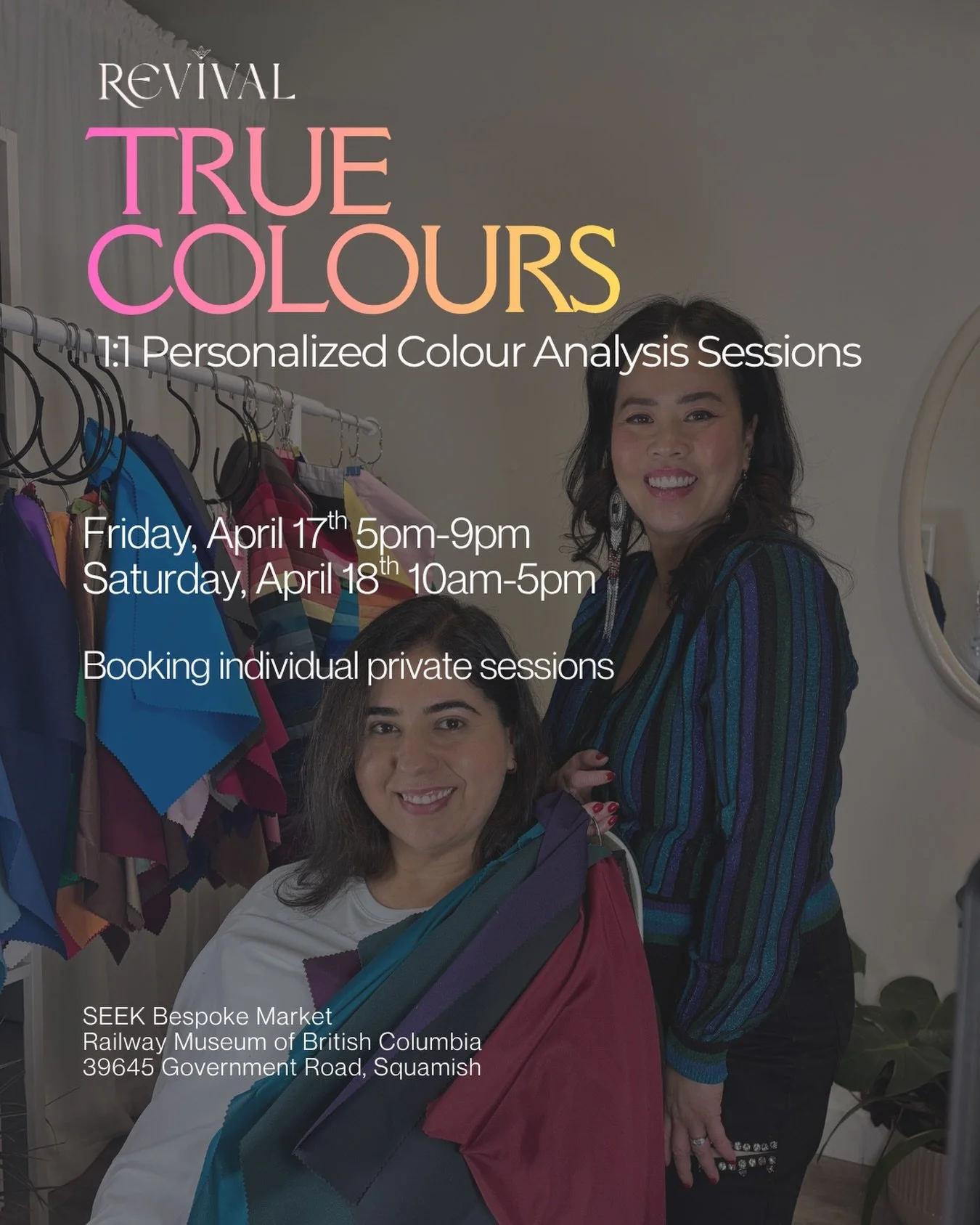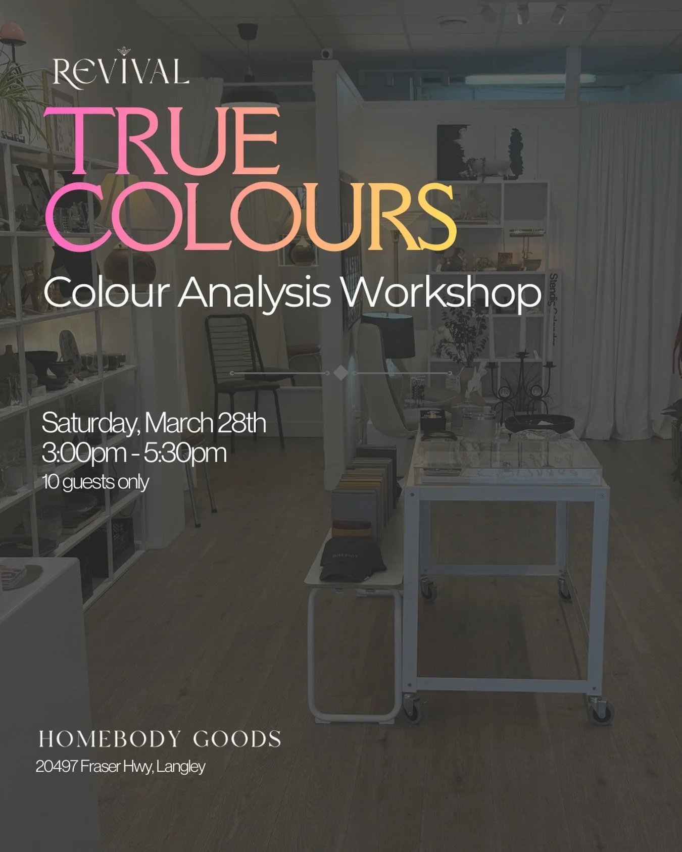 TRUE COLOURS Class is a Colour Analysis Class hosted at REVIVAL monthly.